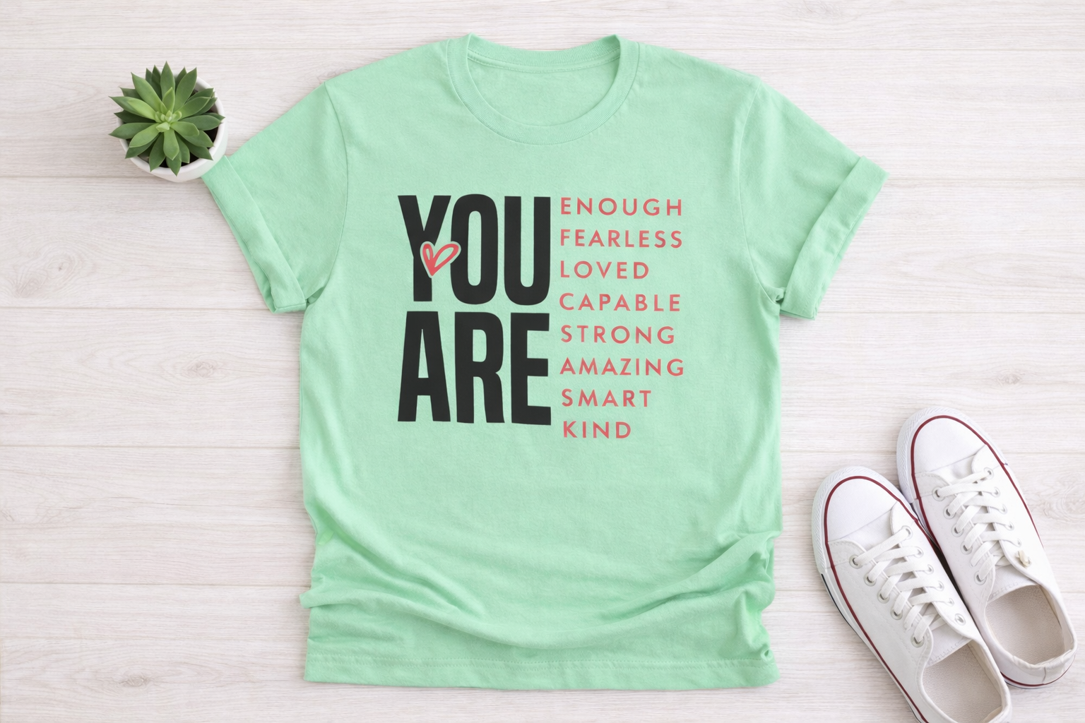 Inspire confidence and positivity with our You Are affirmation design. This uplifting message reminds the wearer that they are strong capable and worthy every day
